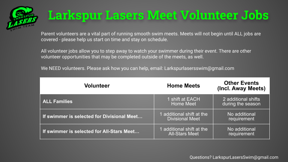 • Larkspur Lasers Volunteer Jobs
